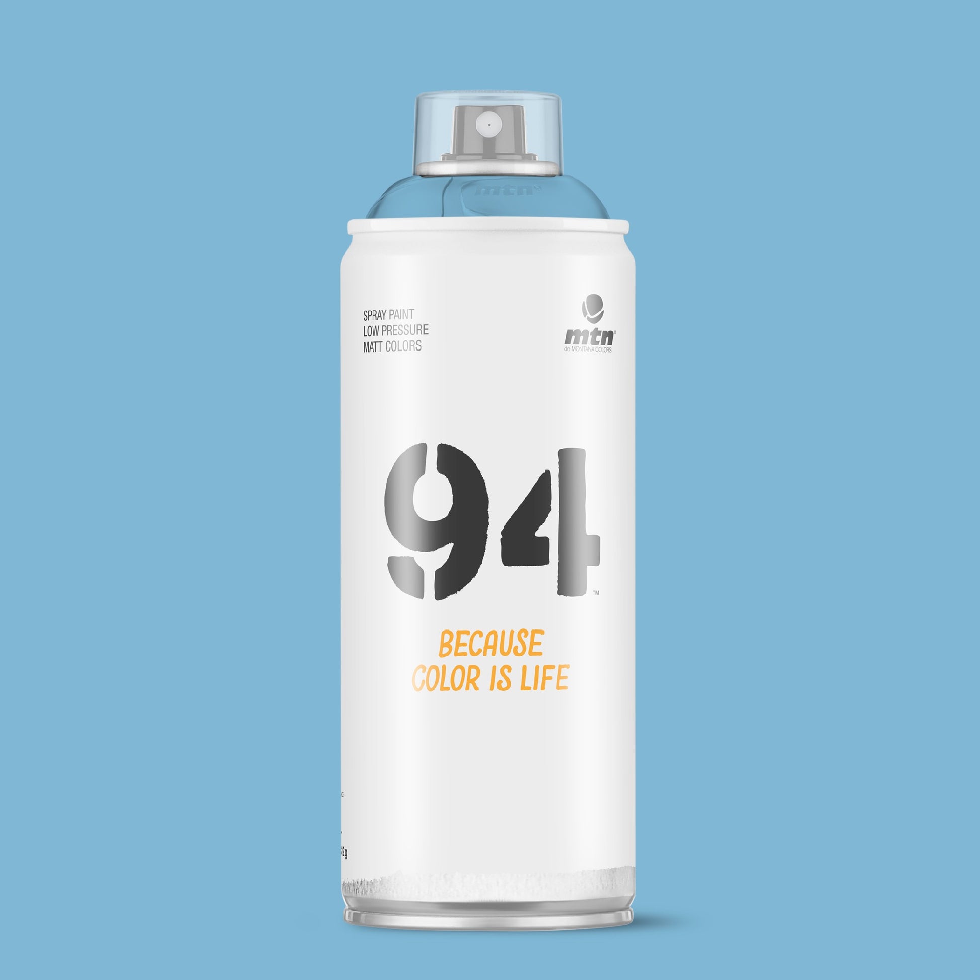 MTN 94 Spray Paint - RV158 - Perseus Blue is a low pressure can with a smooth valve system. These versatile spray cans will provide artists, craftsmen and your everyday DIY'er precise control to achieve your finish and effects with ease. Now with 217 high opacity colours in its range you will never be short of producing your best work. Montana Colors MTN 94 RV158 - Perseus Blue is an opaque full middle to light desaturated blue hue.