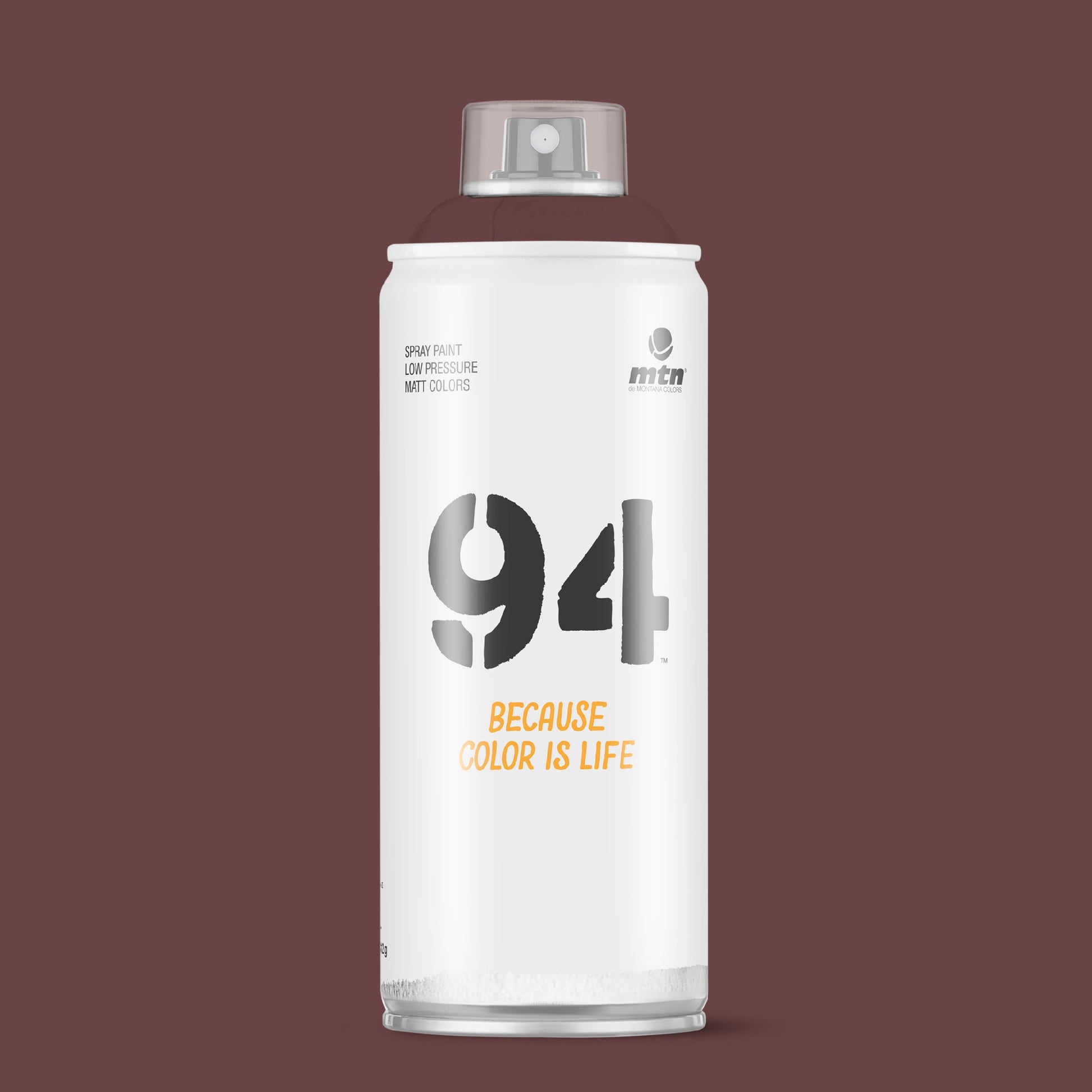 MTN 94 Spray Paint - RV202 - Mosquito Brown is a low pressure can with a smooth valve system. These versatile spray cans will provide artists, craftsmen and your everyday DIY'er precise control to achieve your finish and effects with ease. Now with 217 high opacity colours in its range you will never be short of producing your best work. Montana Colors MTN 94 RV202 - Mosquito Brown is an opaque full middle to dark greyish reddish brown hue.
